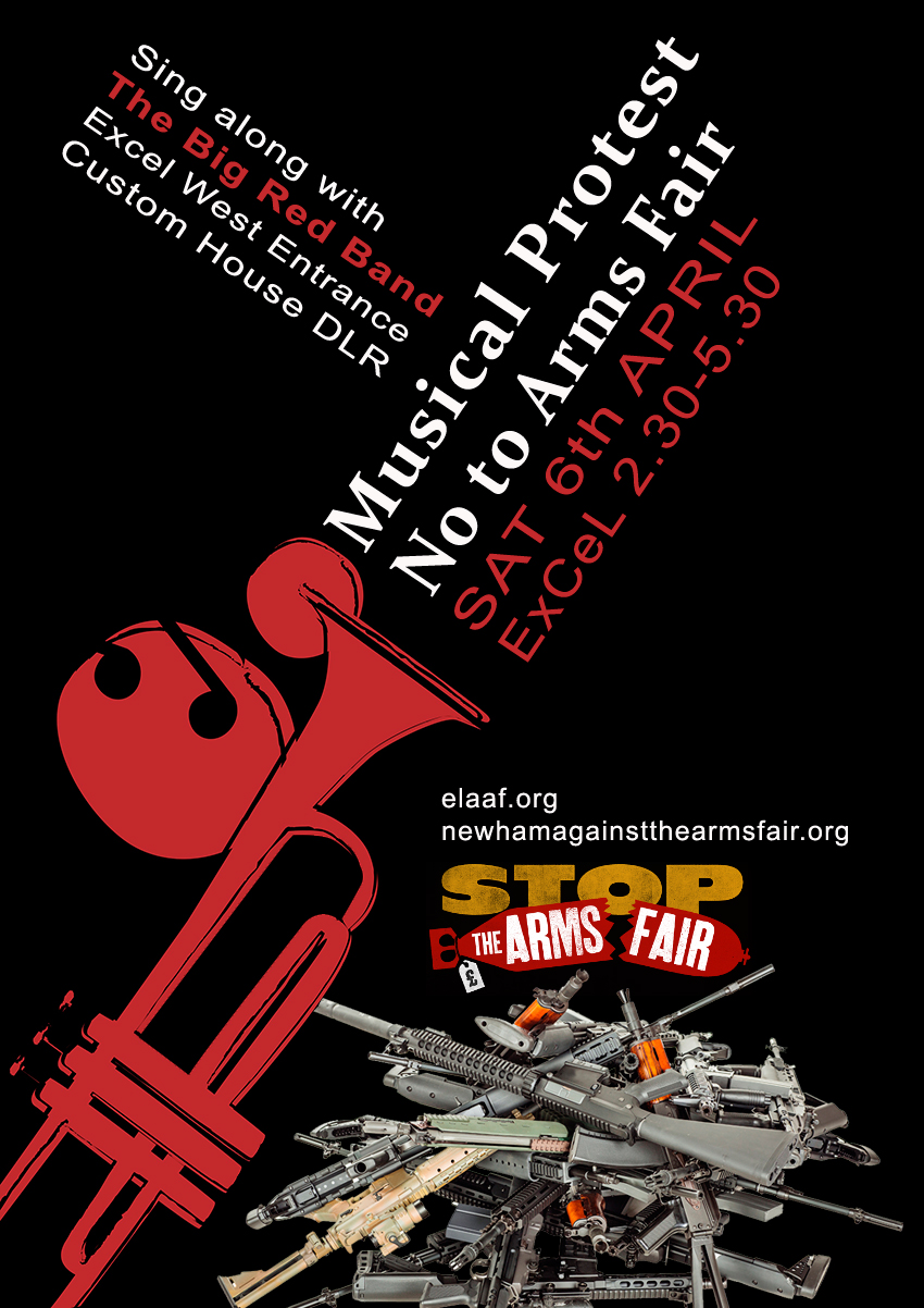 We are having another Musical Protest Against The Arms Fair ….Sat 6th April…All welcome …ExCeL West Entrance Custom House. 2.30 – 5.30pm