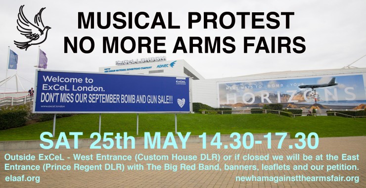 We are having another Musical Protest Against The Arms Fair ….Sat 25th May…All welcome …ExCeL. 2.30 – 5.30pm