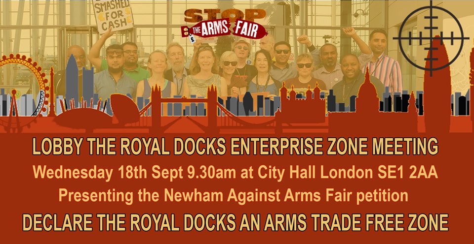 We will be handing our petition to the board calling on them to to take action to stop the DSEI Arms Fair being held at the ExCeL Exhibition Centre in 2021 and declare the Royal Docks as an Arms Trade Free Zone.